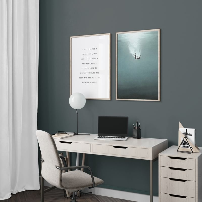 Pasisemkite įkvėpimo paveikslo sienai savo namų biure. Šiame puslapyje surinkome nuotraukų koliažus, skirtus namų biurui. Rūšiuokite pagal sienų spalvą arba plakatų skaičių ir pirkite visą paveikslo sieną arba išsirinkite jums labiausiai patinkančius plakatus ir rėmelius.