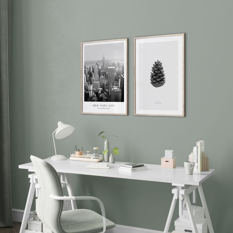Pasisemkite įkvėpimo paveikslo sienai savo namų biure. Šiame puslapyje surinkome nuotraukų koliažus, skirtus namų biurui. Rūšiuokite pagal sienų spalvą arba plakatų skaičių ir pirkite visą paveikslo sieną arba išsirinkite jums labiausiai patinkančius plakatus ir rėmelius.