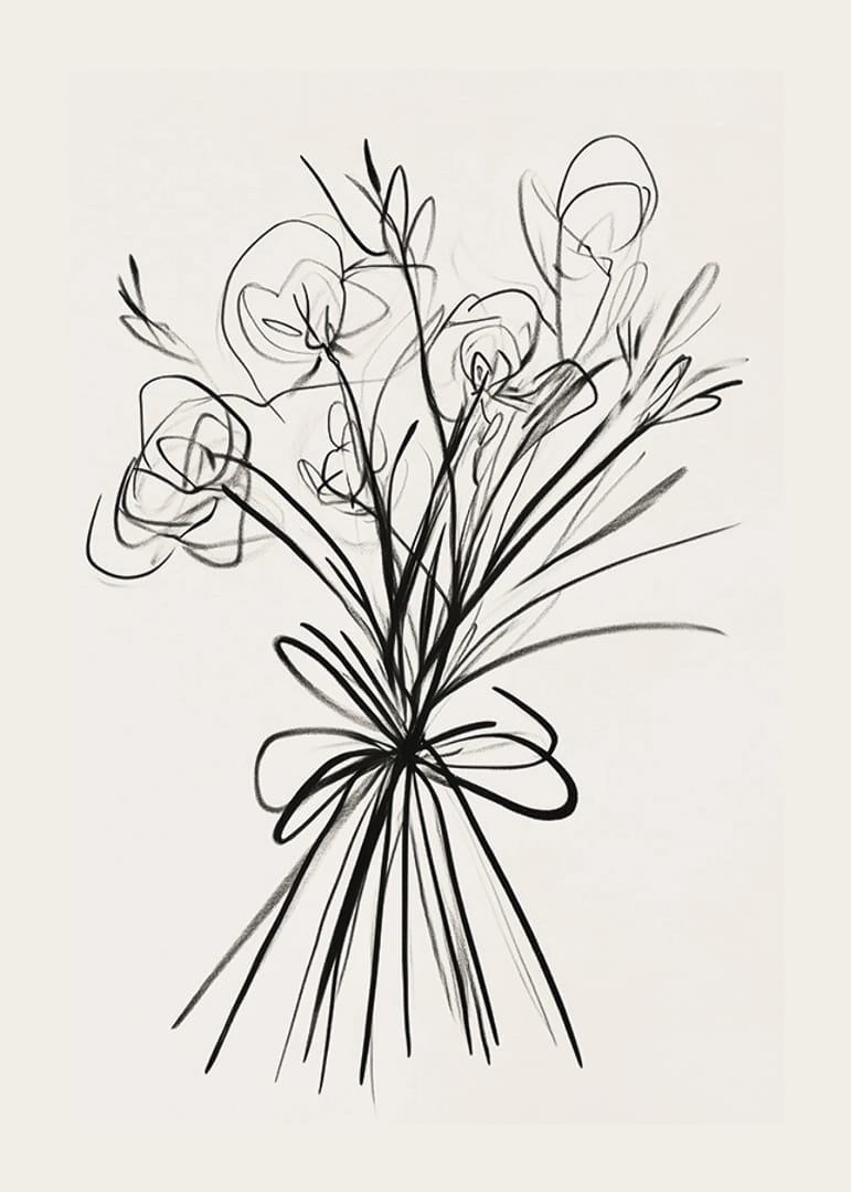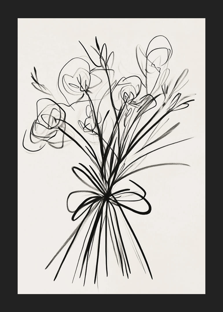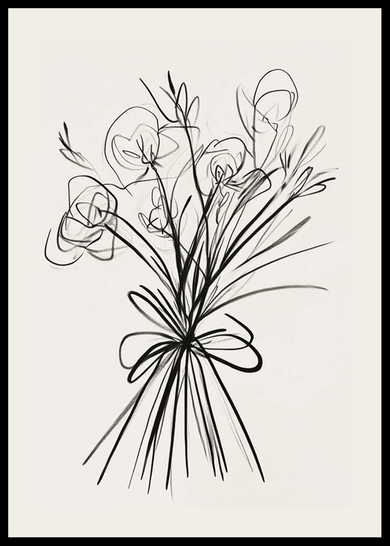 Šis plakatas iškart patraukia akį savo elegantišku rašalo potėpiu gėlių išdėstymu. Švelnios linijos sukuria judėjimo ir gyvybės pojūtį, o minimalistinis stilius dvelkia nesenstančiu grožiu.