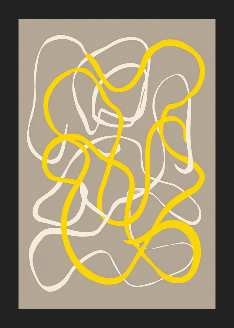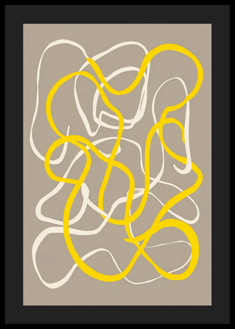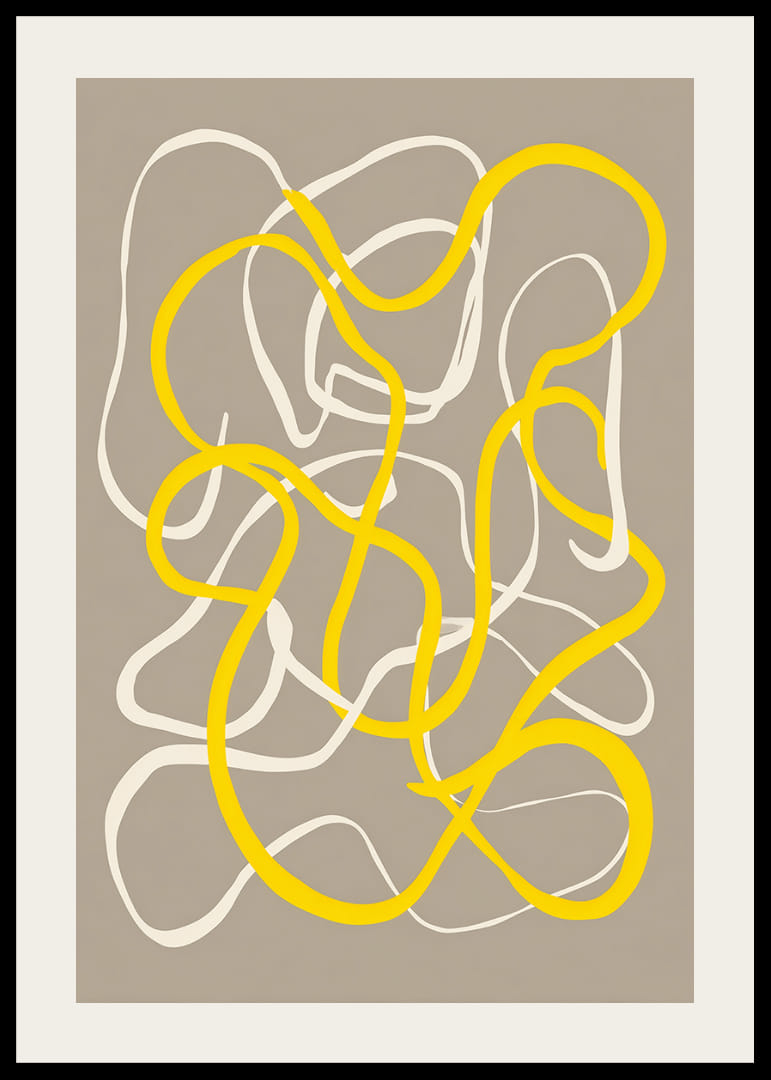 Šis plakatas patraukia akį elegantiškomis geltonų ir baltų tonų linijomis, vingiuojančiomis švelniame, neutraliame fone. Atsirandantis judėjimo ir harmonijos pojūtis suteikia dinamišką atmosferą bet kuriam kambariui, kurį jis puošia. Pažadindamas kūrybiškumą ir ramybę, šis plakatas tampa tobulai subalansuota interjero detale, kuri savo įtaigiomis formomis suteikia stiliaus ir elegancijos.