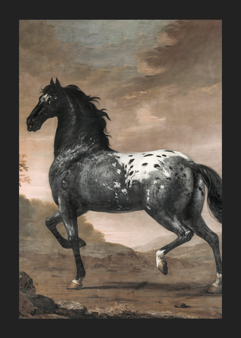 Plakatas su švedų menininko ir dvaro tapytojo Davido Klöckerio Ehrenstrahlio paveikslu "Mėlynasis tigras" nuo 1673 m. Paveikslas yra Karolio XI žirgo Mėlynojo tigro portretas.
