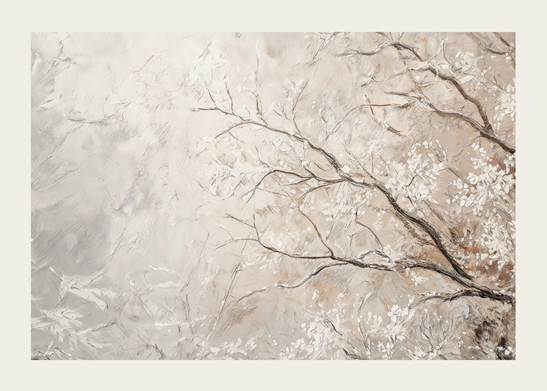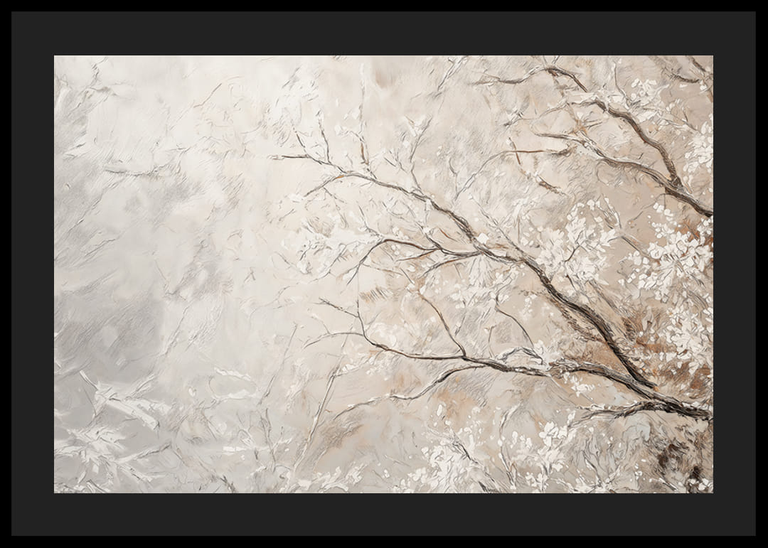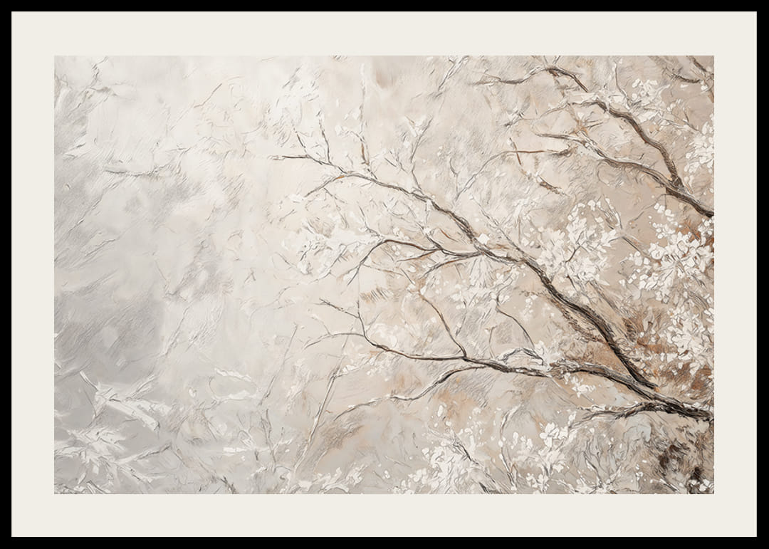 Užfiksuokite subtilų žiemos grožį su šiuo plakatu, kuriame darnioje ir minimalistinėje kompozicijoje pavaizduotos šerkšno dengtos šakos. Švelnūs, natūralūs tonai sukuria ramybės ir elegancijos pojūtį, puikiai tinkantys bet kokiam kambariui. Nesenstanti duoklė gamtos meniškumui ir ideali puošmena, leidžianti jūsų namuose skleisti ramybę ir žiemos magiją